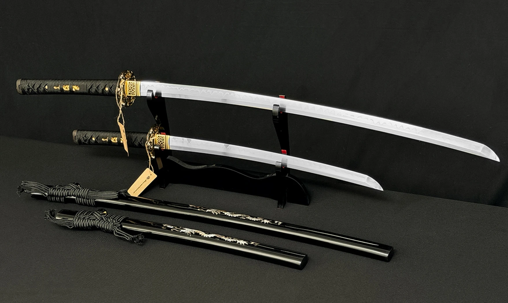 Ensemble Katana + Wakizashi Dragon – Acier 1095 Maru – Hamon Midare Véritable – Full Tang