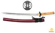 Saya (Fourreau): Bois sélectionné. Laqué Rouge bordeau. Courbé selon le Sori de la lame.